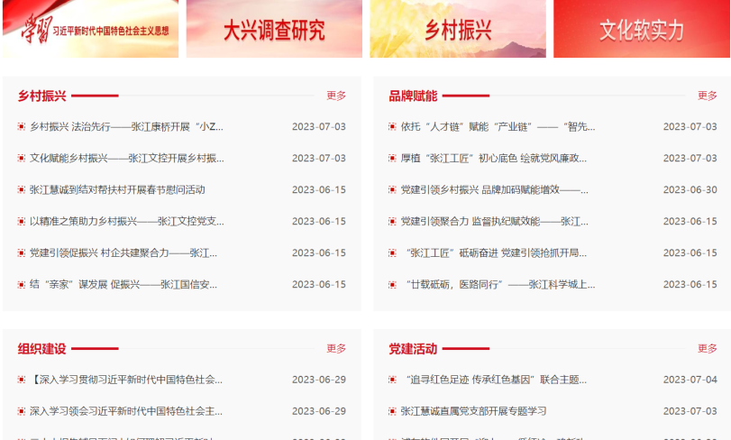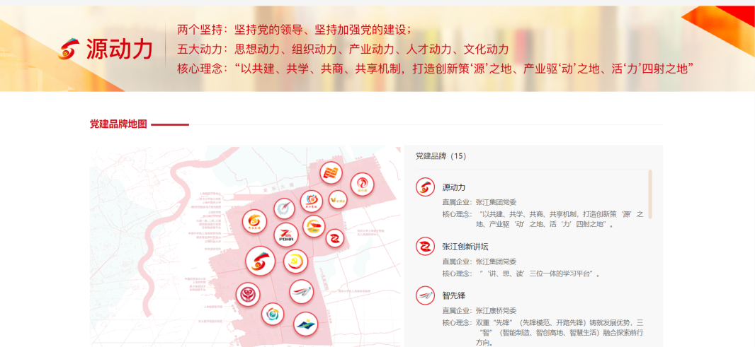 平台含动态信息、党建共建、张江风采、荣誉先进、党建品牌等五大板块,从各个维度展现张江集团的风采。